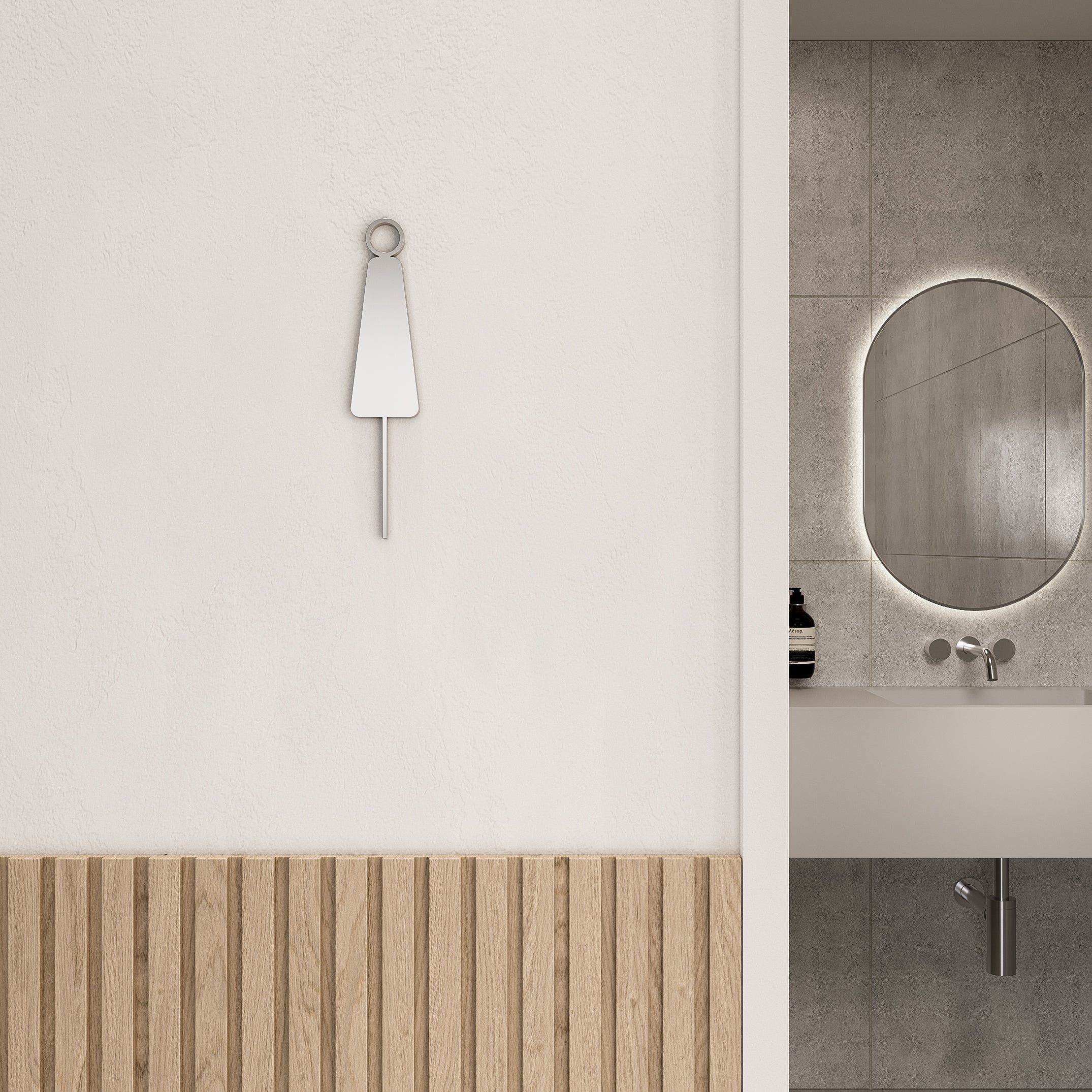 | What's In The Box | 1 x Restroom sign 1 x Double sided 3M adhesive 1 x Clear cut-out guide ( Template ) 2 x Projected spacers 2 x Threaded rods 2 x Wall anchors |