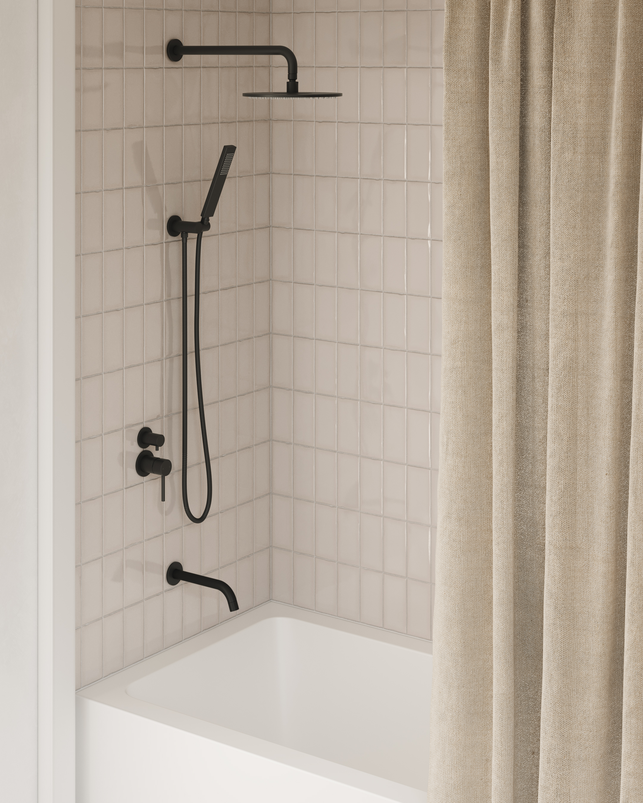 The Elysian Thermostatic 3-Way Diverter blends contemporary design with exceptional functionality. Offering precise thermostatic control across three outlets, it allows effortless switching between a bath spout, hand shower, and rain head while maintaining a consistent water temperature and flow.