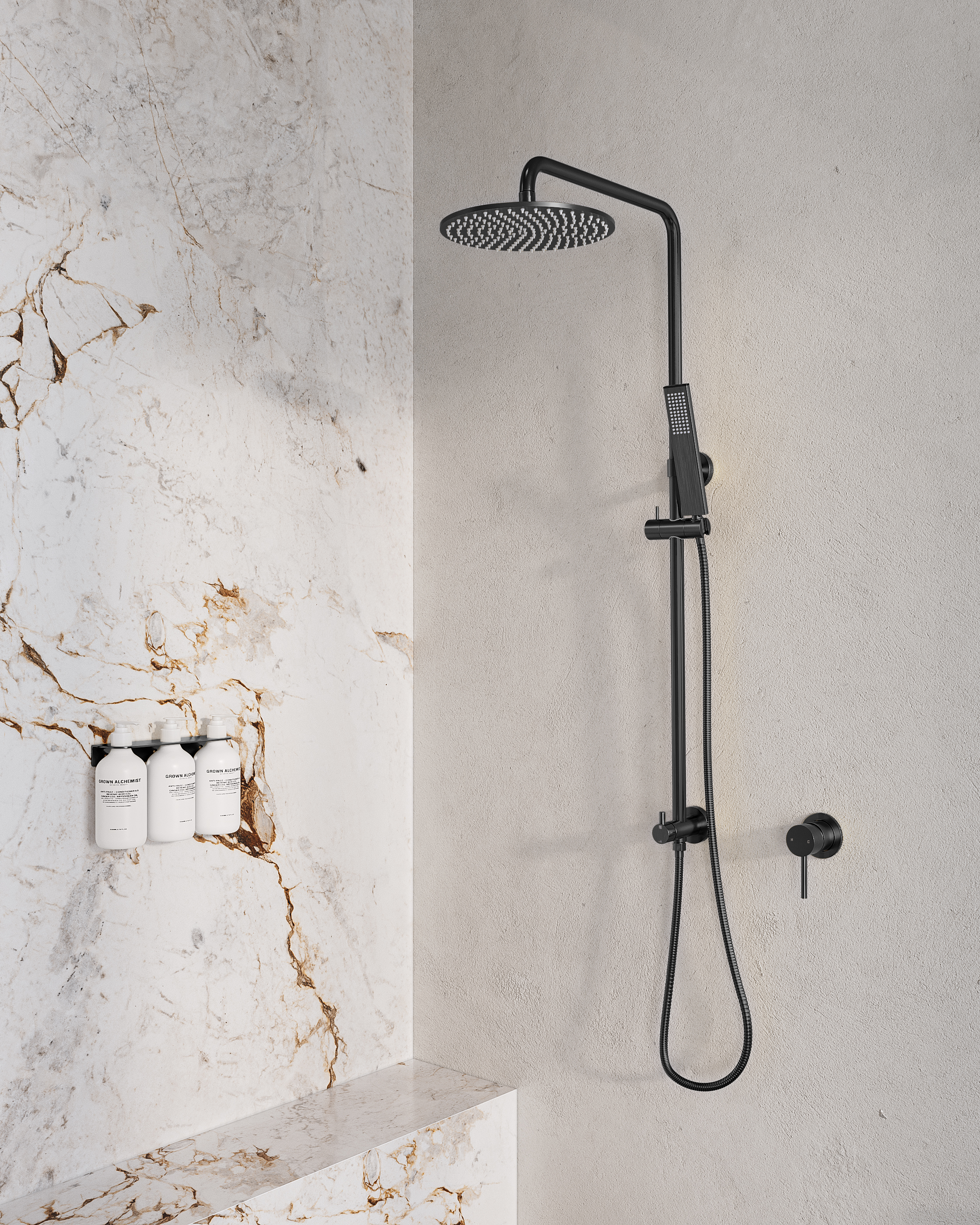 The Elysian Thermostatic Shower Mixer is compatible with any ABI Interiors shower head, shower set, handheld shower or spout.