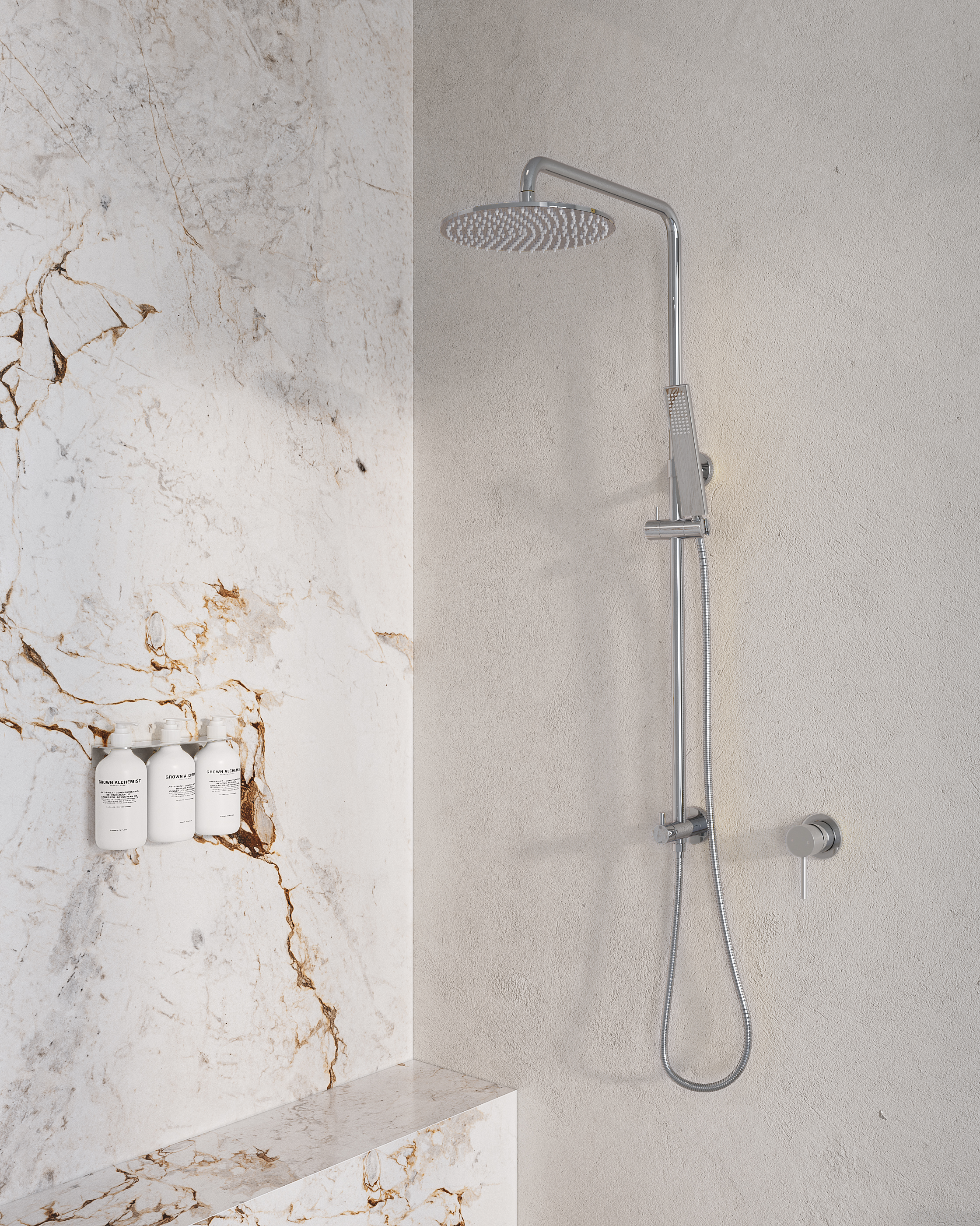 The Elysian Thermostatic Shower Mixer is compatible with any ABI Interiors shower head, shower set, handheld shower or spout.
