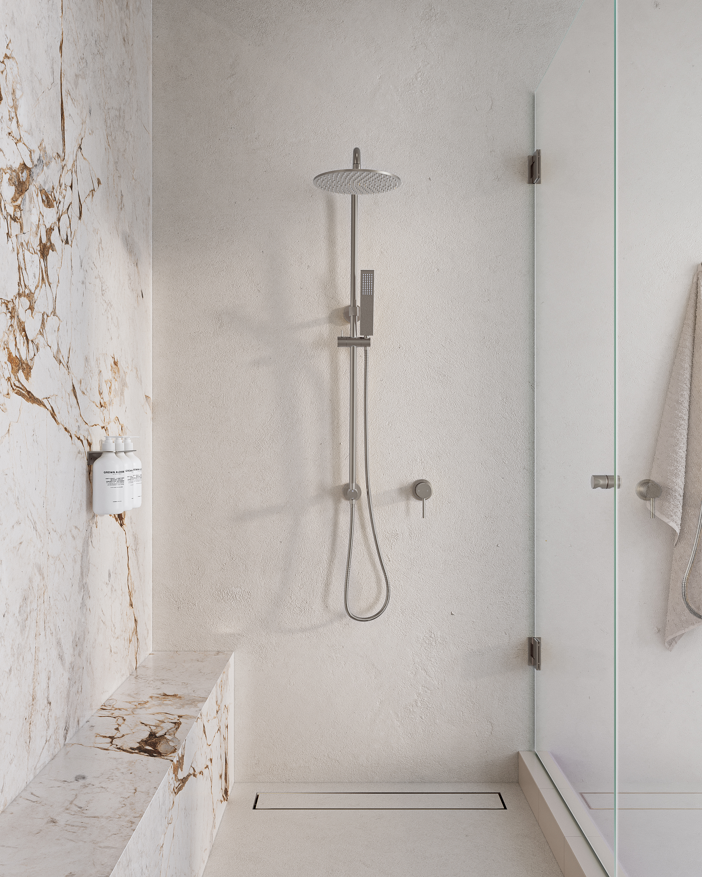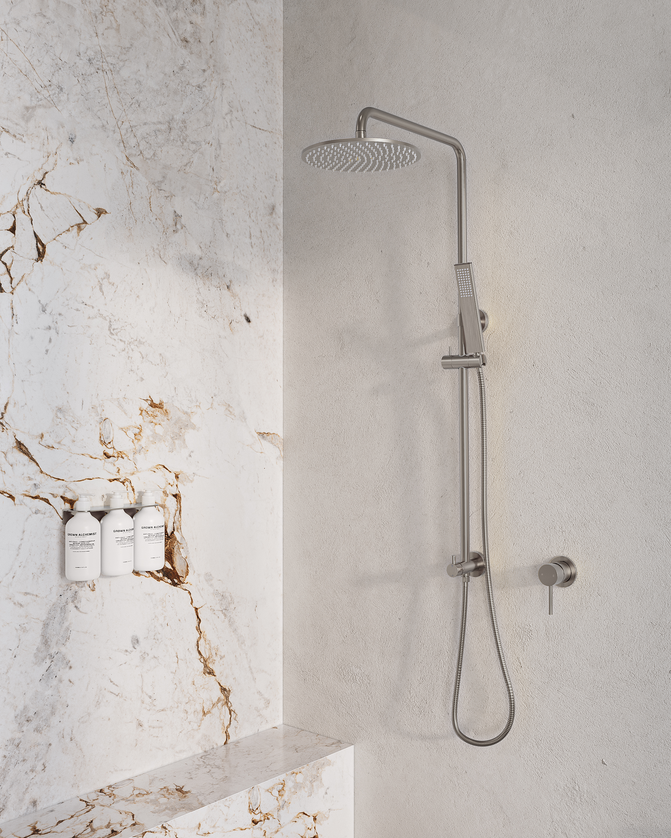 | Elysian Thermostatic Shower Mixer - Stainless Steel - Rounded Rectangle Hand Shower | - |
