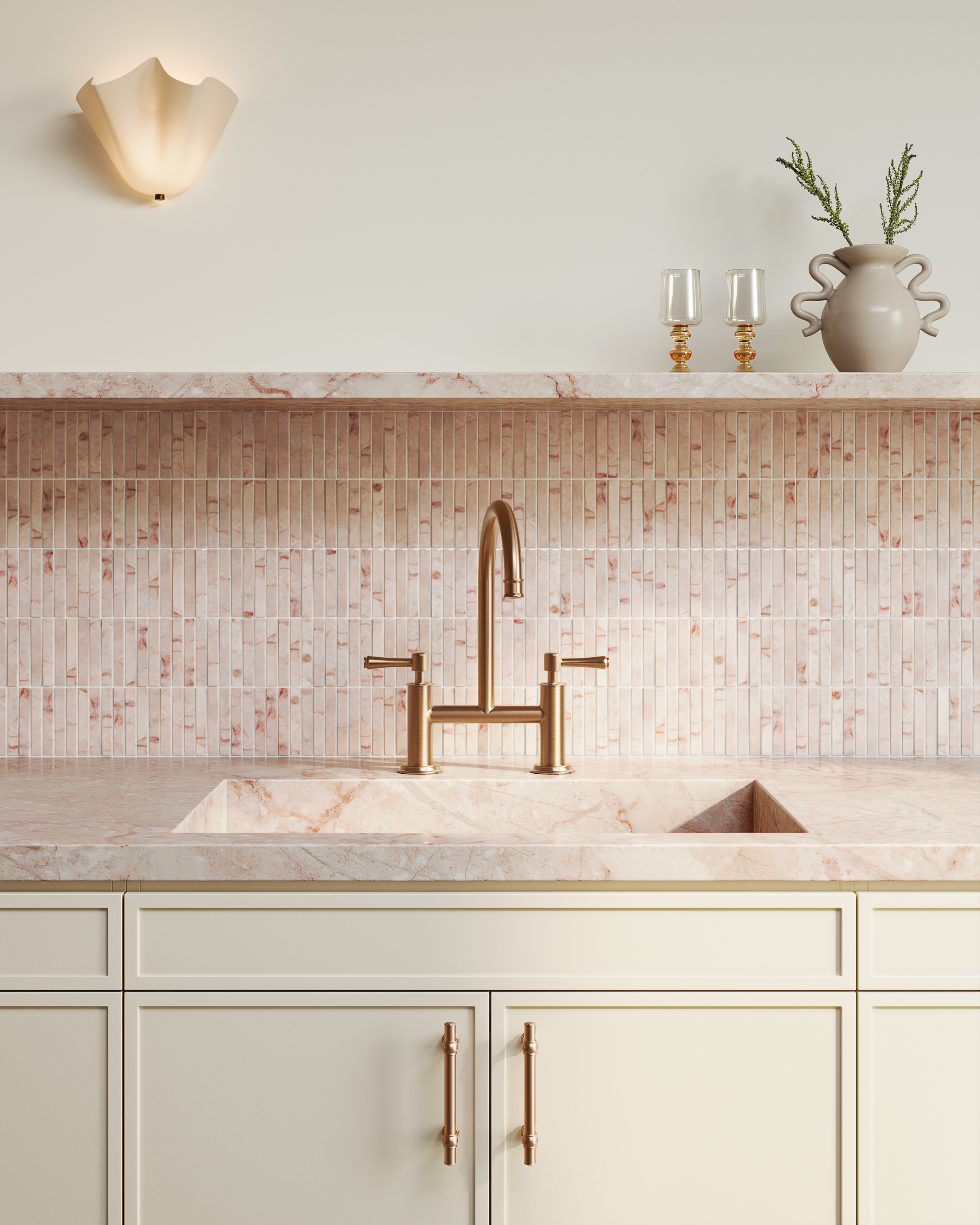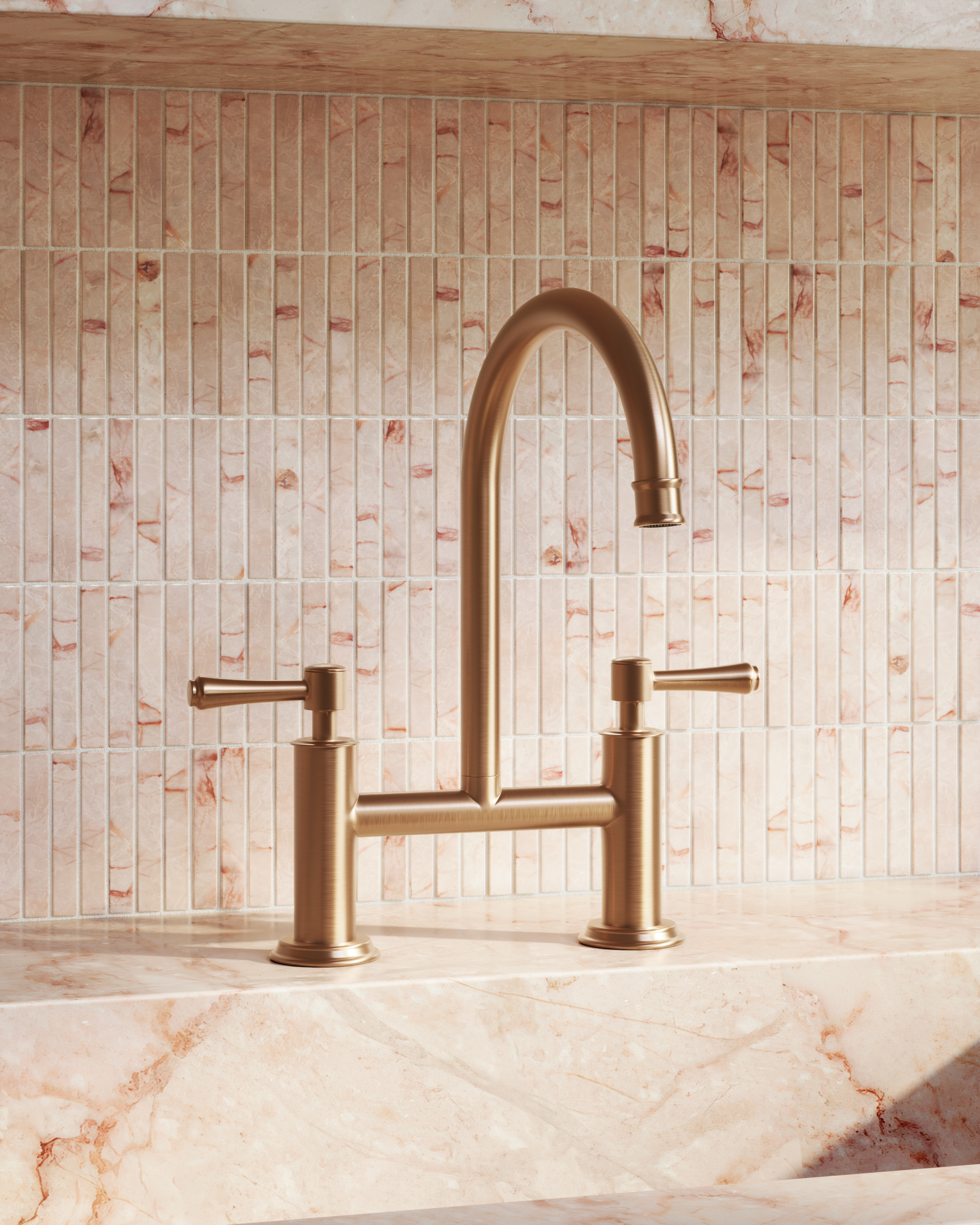 The Kingsley Kitchen Bridge Mixer Tap instantly elevates any kitchen with its sleek gooseneck spout and elegant details. Made from solid brass, it promises lasting durability and has an easy-to-use swivel function. Its assembly-handled controls and above-bench coloured breech add a refined touch.