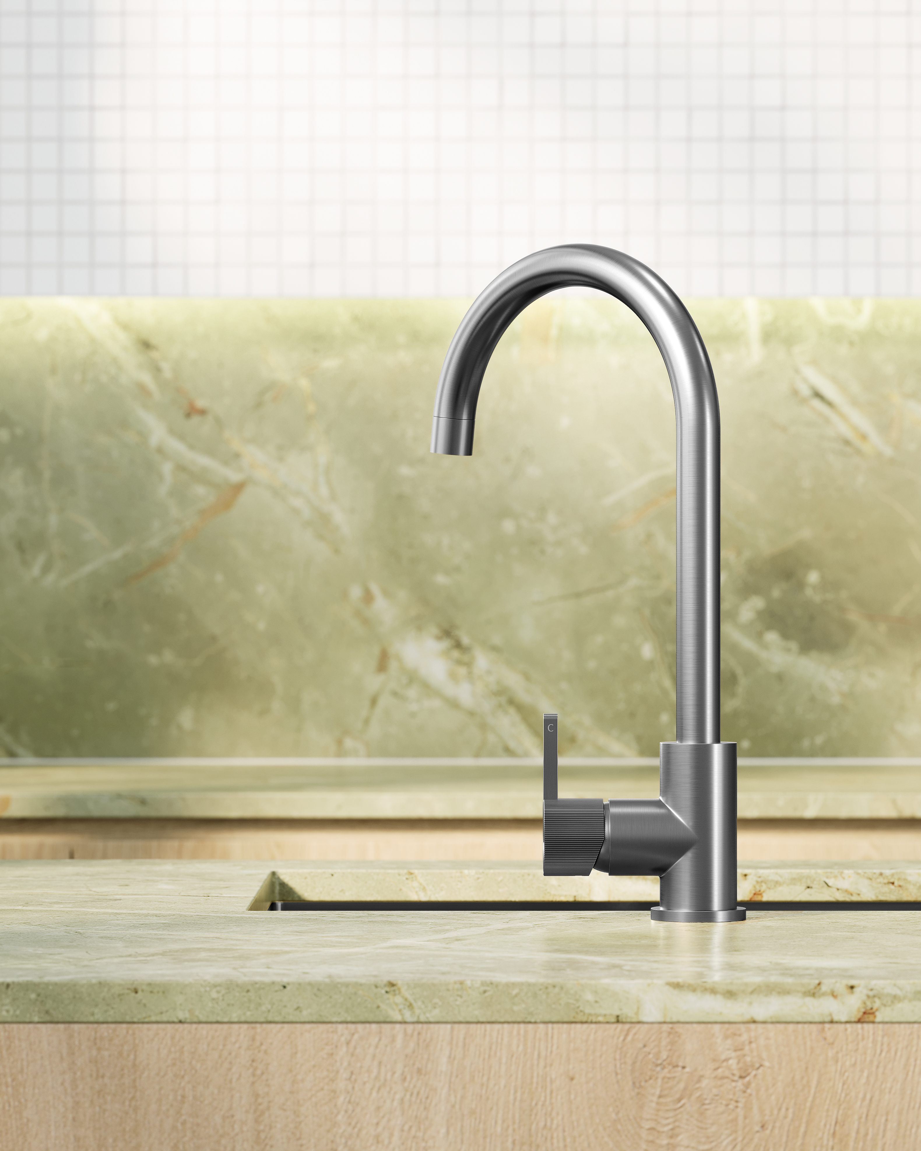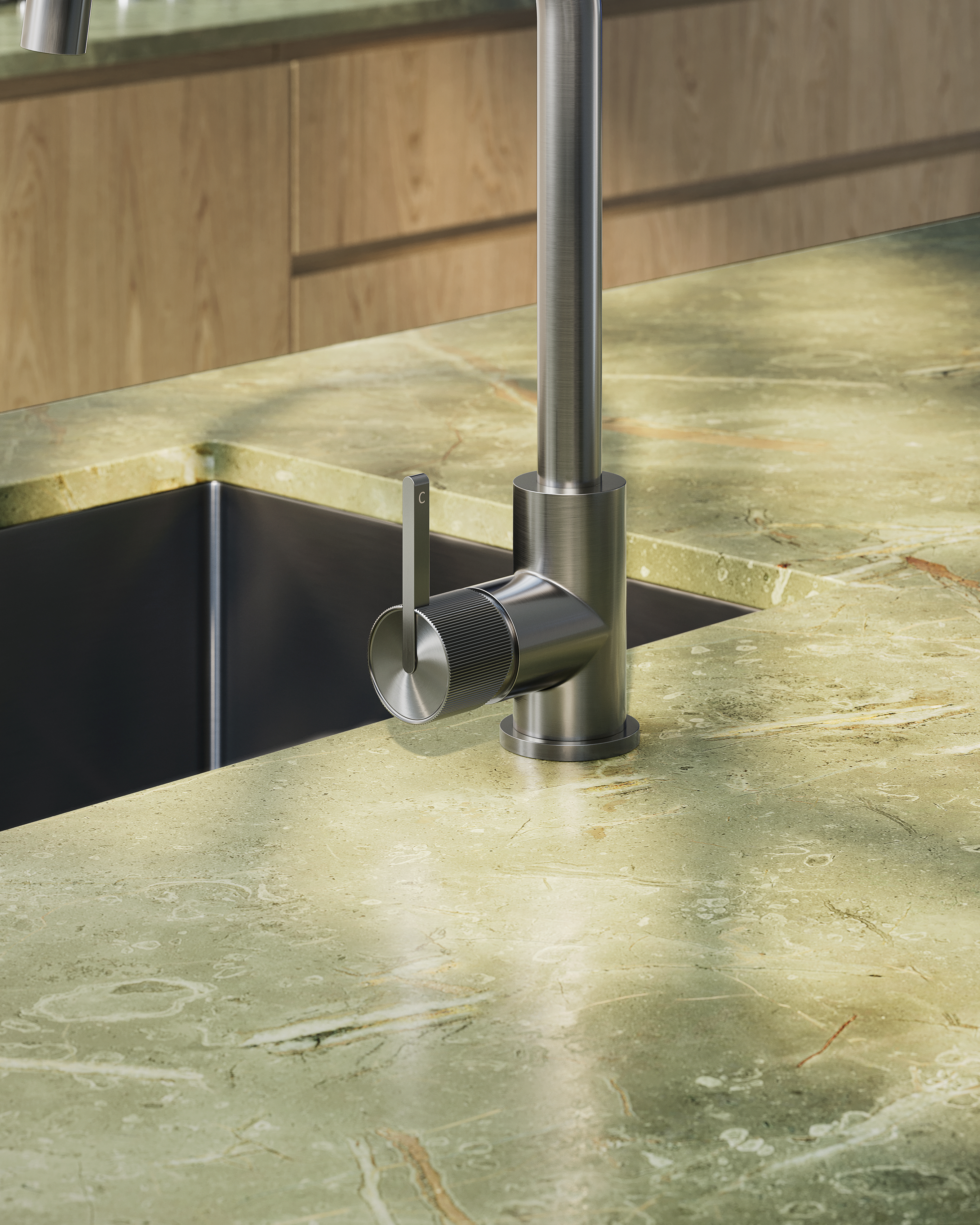 Introducing the Namika Kitchen Mixer — a knurled tap that celebrates the craftsmanship of intricate design. Turning its subtly reeded handle evokes a tactile experience, transforming your space into a world to be seen and felt.