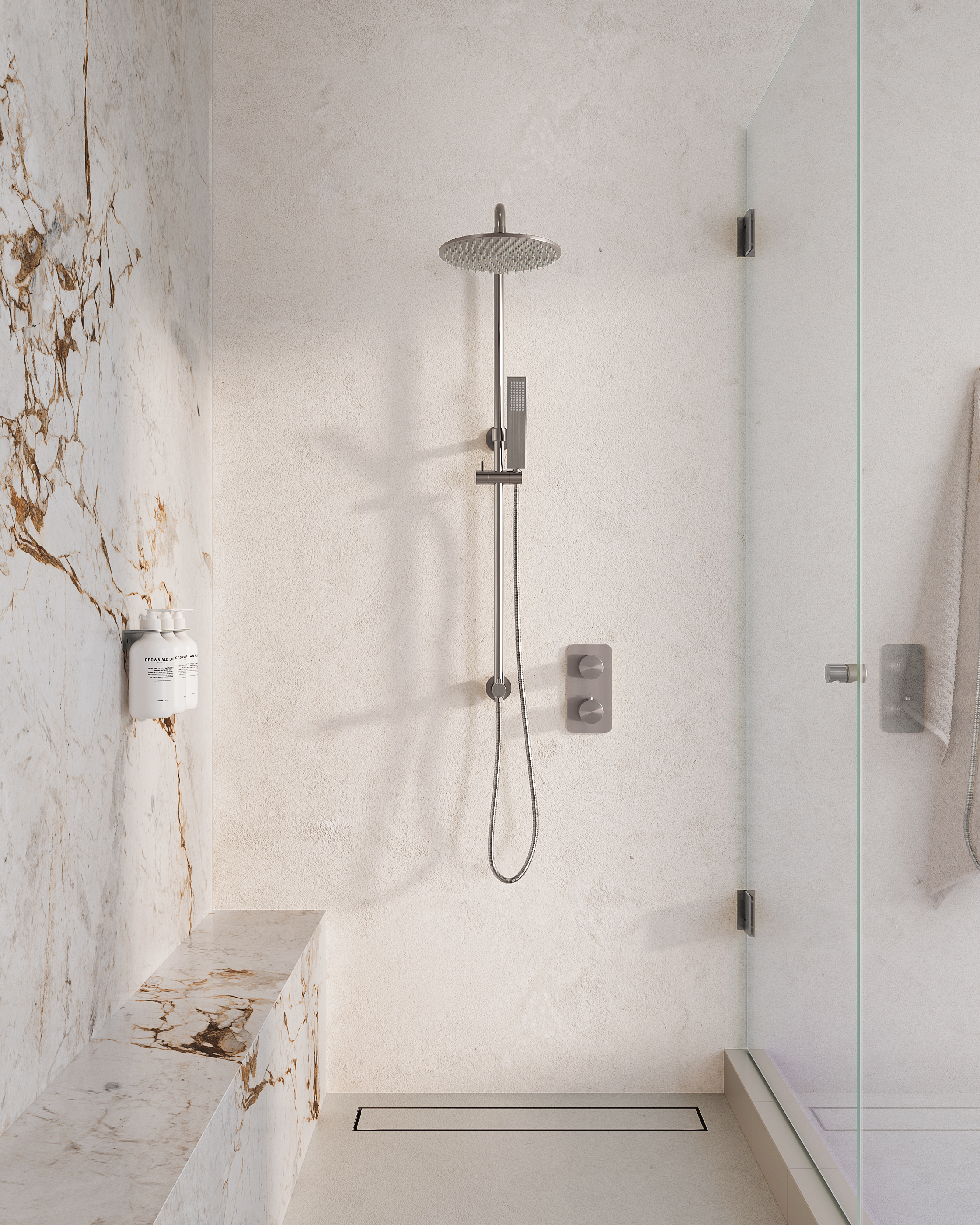 – This shower channel works best with a 90mm floor waste trap.