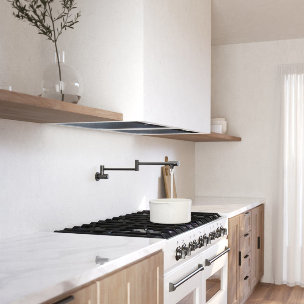Sometimes you need a smart solution to an everyday task. With instant accessibility in mind, this wall-mounted extendable arm with a quarter turn ceramic cartridge makes the prospect of filling your pots and pans in the kitchen so much simpler.